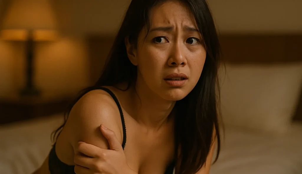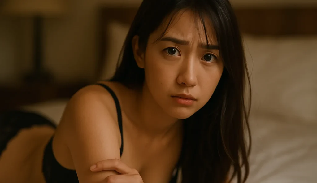 さらにプレイの後半では、突然力づくで体を押さえつけてきて、こちらがNOと言っても離れようとしない。その瞬間、背中に冷たい汗が流れ、「このままでは本当に危ない」と直感的に感じました。